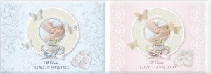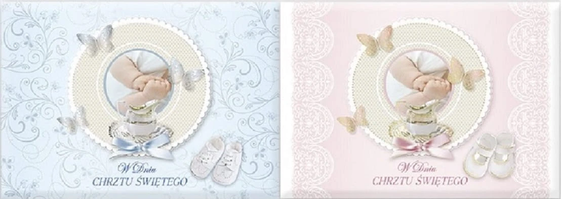 Bardzo ładna i sympatyczna KSIĄŻECZKA PAMIĄTKA NA CHRZEST. Wykonana w formie albumiku pamiątkowego, który we wnętrzu zawiera +_10 stron z tekstami okolicznościowymi : Modlitwy Rodziców, sentencje nawiązujące do tak ważnego wydarzenia w życiu każdego człowieka jakim jest Otrzymanie Chrztu Świętego oraz miejsce na wpisy : Imion dziecka i daty Chrztu - kto został Rodzicami Chrzestnymi oraz miejsce na podpis osoby darowującej wraz z miejscem na pieniążki i kopertą . Można również w kopercie umieścić łańcuszek z medalikiem lecz bez pudełeczka. Książeczka jest zredagowana i wykonana w taki sposób, że jest to PAMIĄTKA prawdziwa , nie tylko opakowanie na pieniądze. Proponowana w dwóch kolorach : różowym dla dziewczynki lub niebieskim dla chłopca.