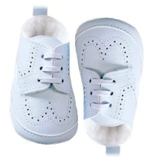 BUCIKI NA CHRZEST Chłopięce skórzane z futerkiem BŁĘKITNE
