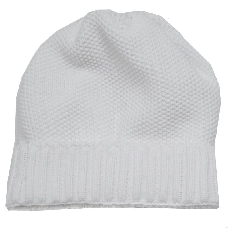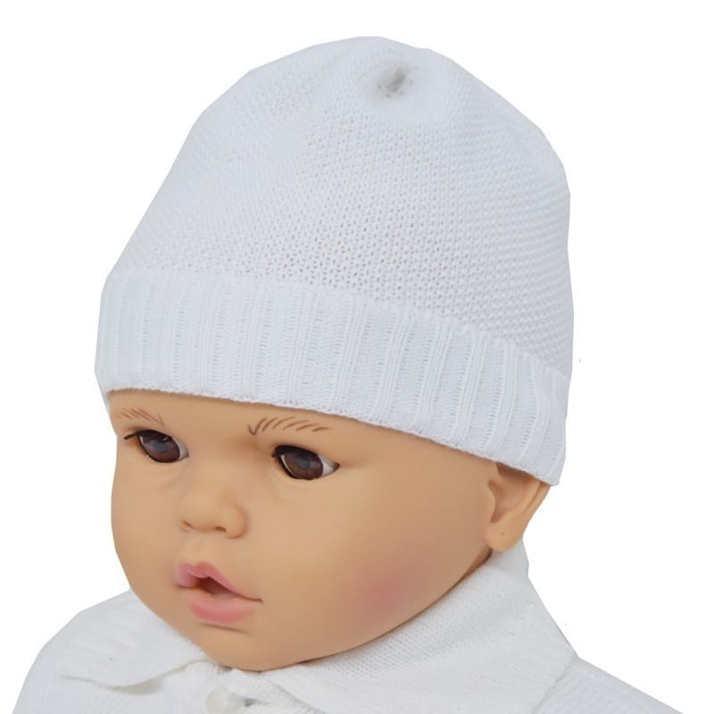 Śliczna i bardzo wygodna czapeczka z białej dzianiny , polecana szczególnie dla chłopczyka, z uwagi na brak dekoracji.