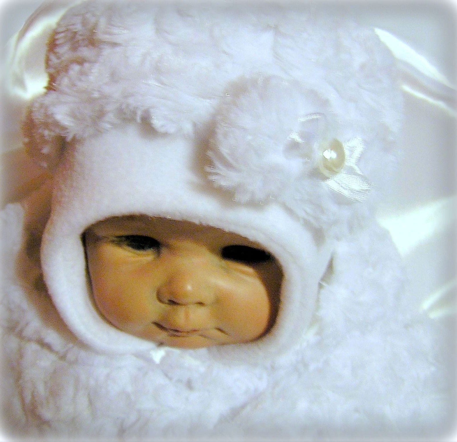 - CZAPECZKAZ białego polarku, na bawełnie , z wiązanymi nausznikami