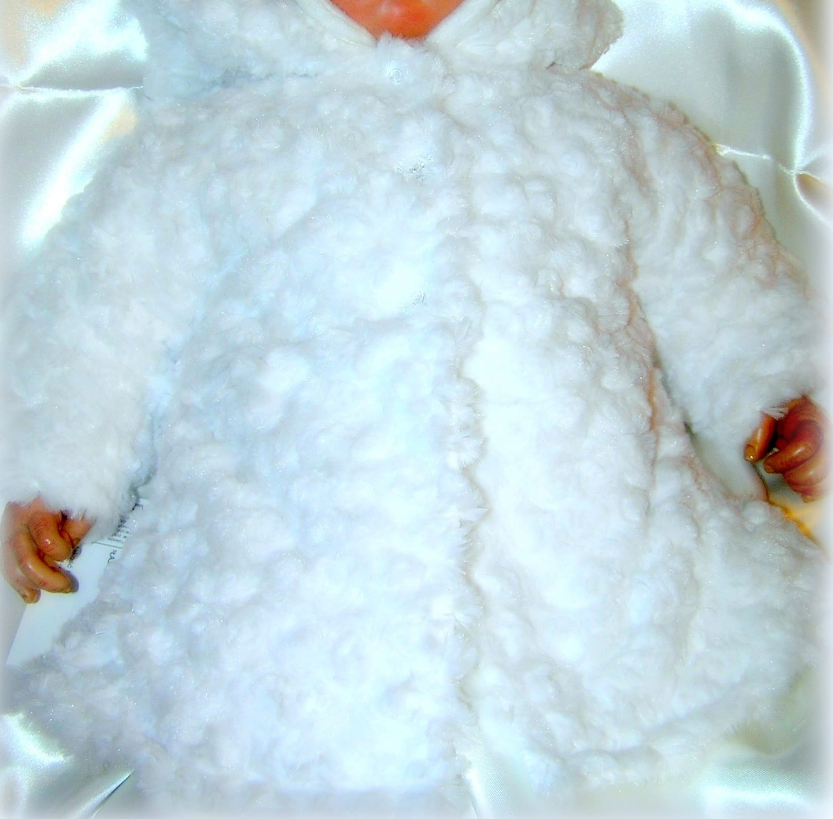 Piękne bielutkie UBRANKO na Chrzest Święty dla dziewczynek. Wykonane z futerka MINKI Drobne Różyczki. Komplet z futerka jest super mięciutki, cieplutki i bardzo szykowny. Jest idealny dla najmniejszych maluszków.W żaden sposób nie ogranicza ruchów dziecka. Każdy maluszek wygląda w nim jak maleńki aniołek. Jest śliczny, a zdjęcia nie oddają jego wielkiego uroku.
