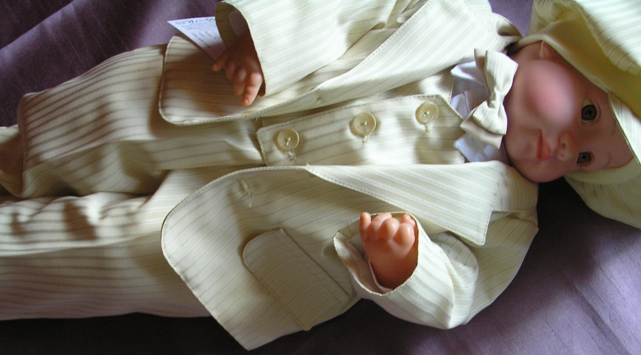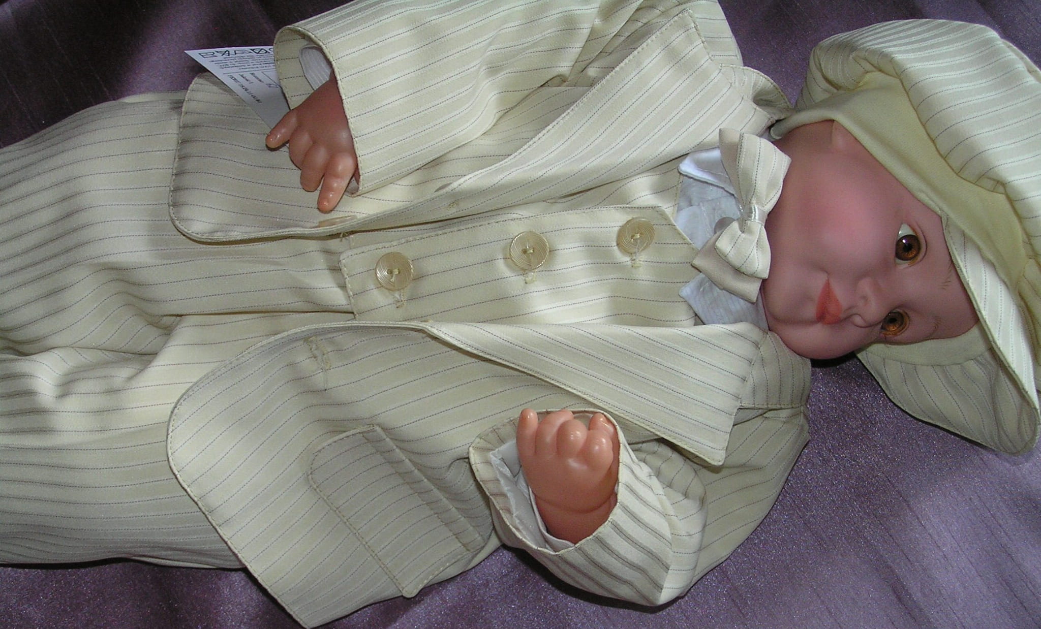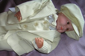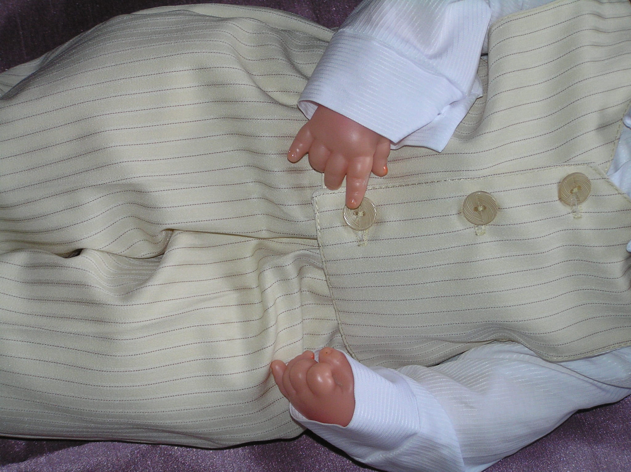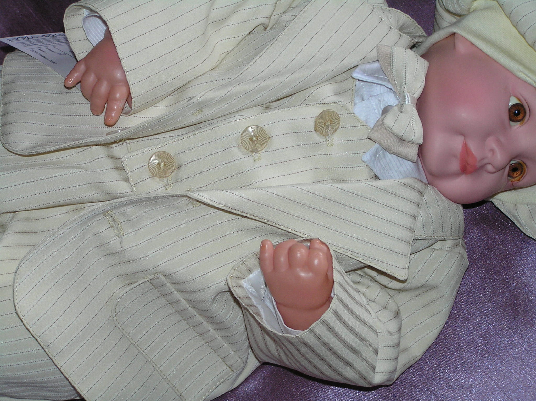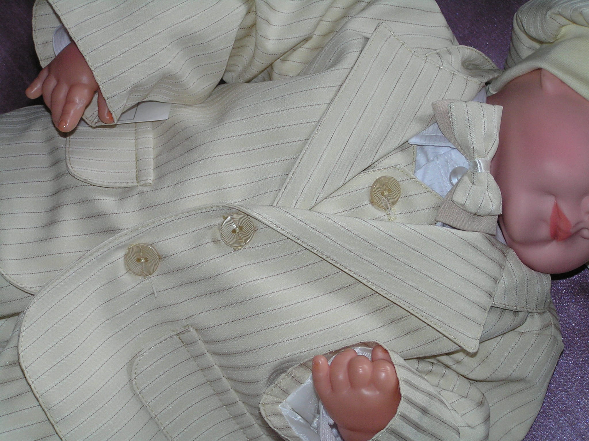 Piękny, jasnobeżowy garnitur dla małego eleganta. Doskonały na ważne uroczystości i szalone imprezy. Luźny fason i delikatny materiał sprawiają, że ruchy maluszka nie są ograniczane. Uszyty bardzo starannie z cienkiej, prążkowanej tkaniny.