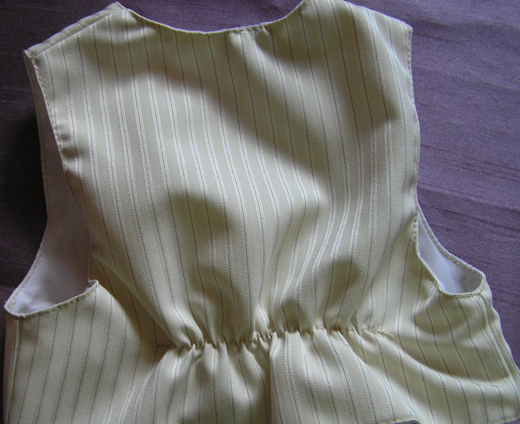 - Koszulka z białej, cieniutkiej prążkowanej etaminy z długim rękawkiem i zapinanym mankietem