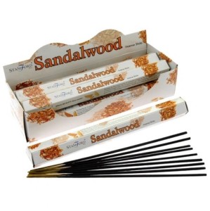 Kadzidełka z zapachem drzewa sandałowego. Kadzidełka mają łagodny, słodki i ziemisty aromat, który jest uważany za relaksujący i kojący. Zapach ten jest popularny w medytacji i praktykach duchowych jako sposób na wprowadzenie w stan spokoju i wewnętrznej równowagi.