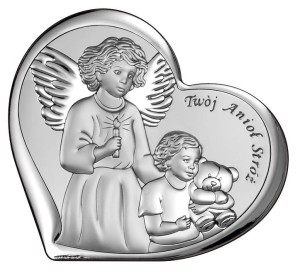 OBRAZEK ANIOŁ STRÓŻ ZE ŚWIECĄ NAD DZIECKIEM POSREBRZANY to piękna i niebanalna pamiątka na wiele dzieciecych okazji takich jak np. Chrzest Święty. Pamiątka orgyginalna, produkcji renomowanej włoskiej firmy. Jest wykonana technią metaloplasytyki na płytce drewnianej lub laminoiwanej, następnie powlekana grubą warstwą srebra próby 925g i zabezpieczona specjalnym werniksem i lakierem. Zatem jakość i precyzja wykonania jest doskonała, produt dużej trwałości .