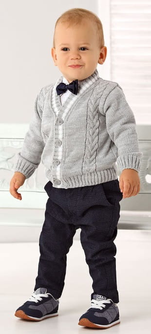 SWETEREK NA CHRZEST dla Chłopczyka SZARY-J117