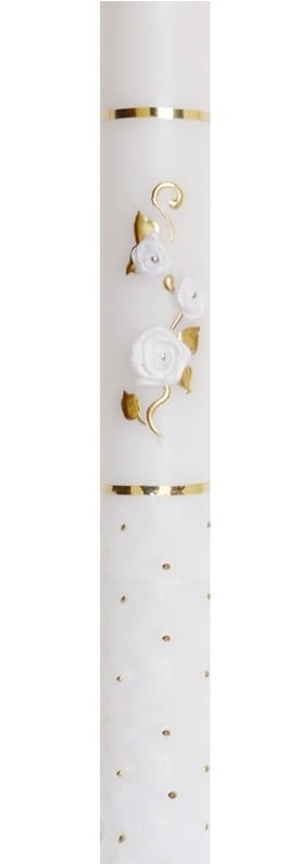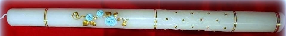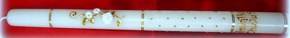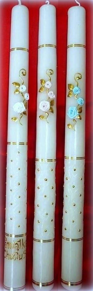 Piękna świeca NA CHRZEST to nieodzowny atrybut przy tym najważniejszym, pierwszym w życiu każdego człowieka sakramencie. Wykonana z bielutkiej i bardo trwałej stearyny. Świeca jest ręcznie dekorowana, ręcznie są również wykonane rzeźbienia na świecy. Napis może być wykonany ręcznie lub z naklejki. całość prezentuje się niezwykle efektownie.