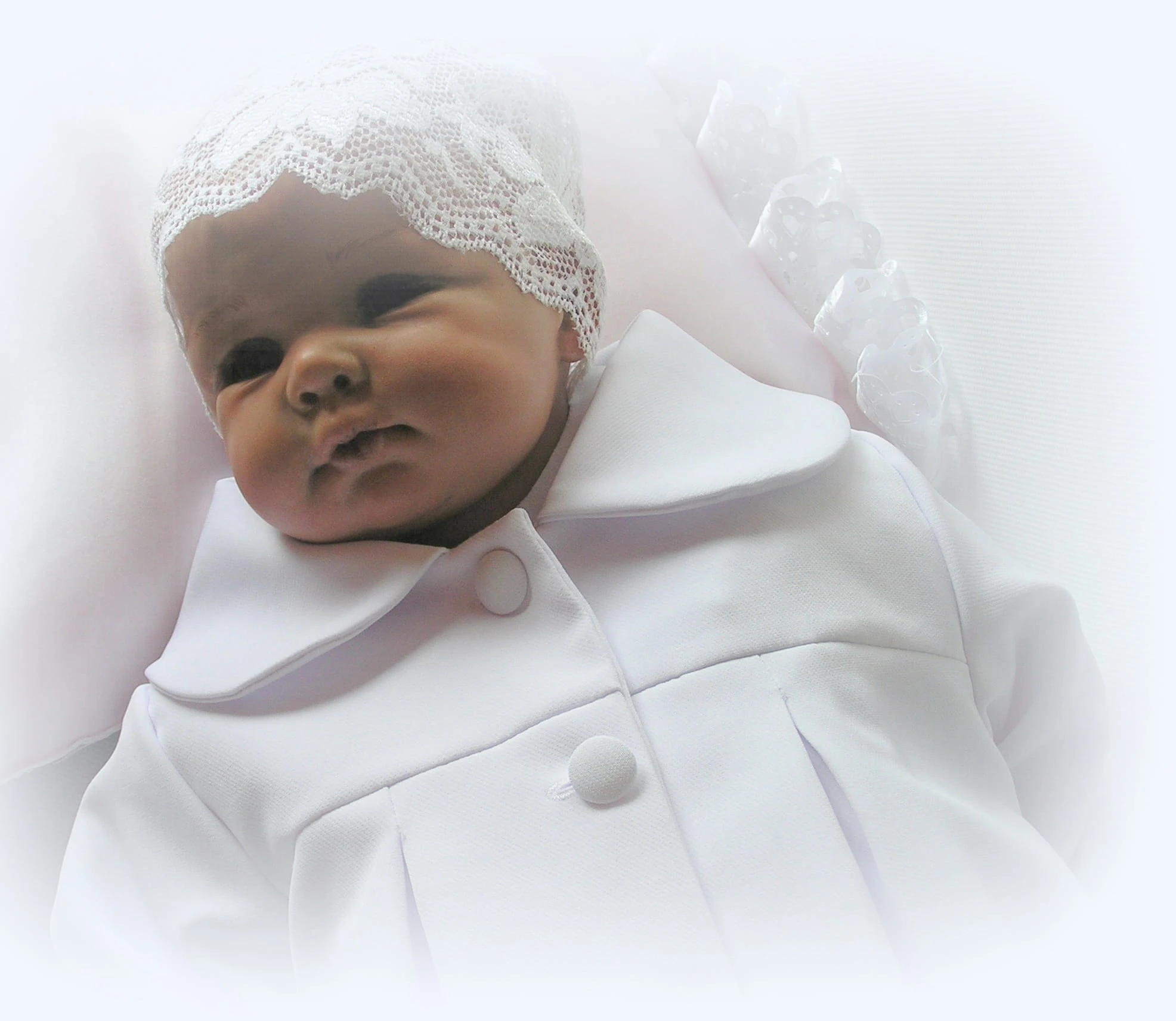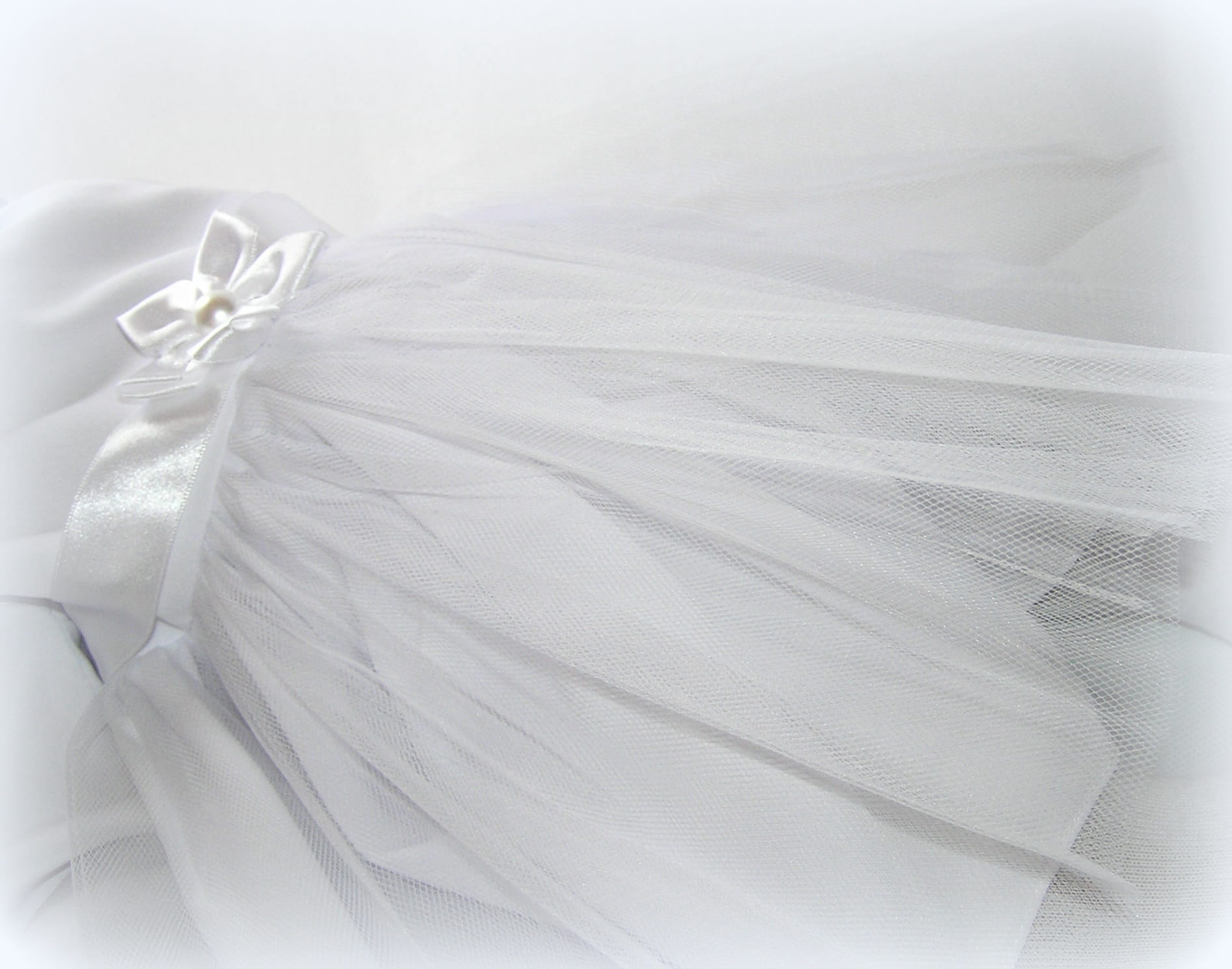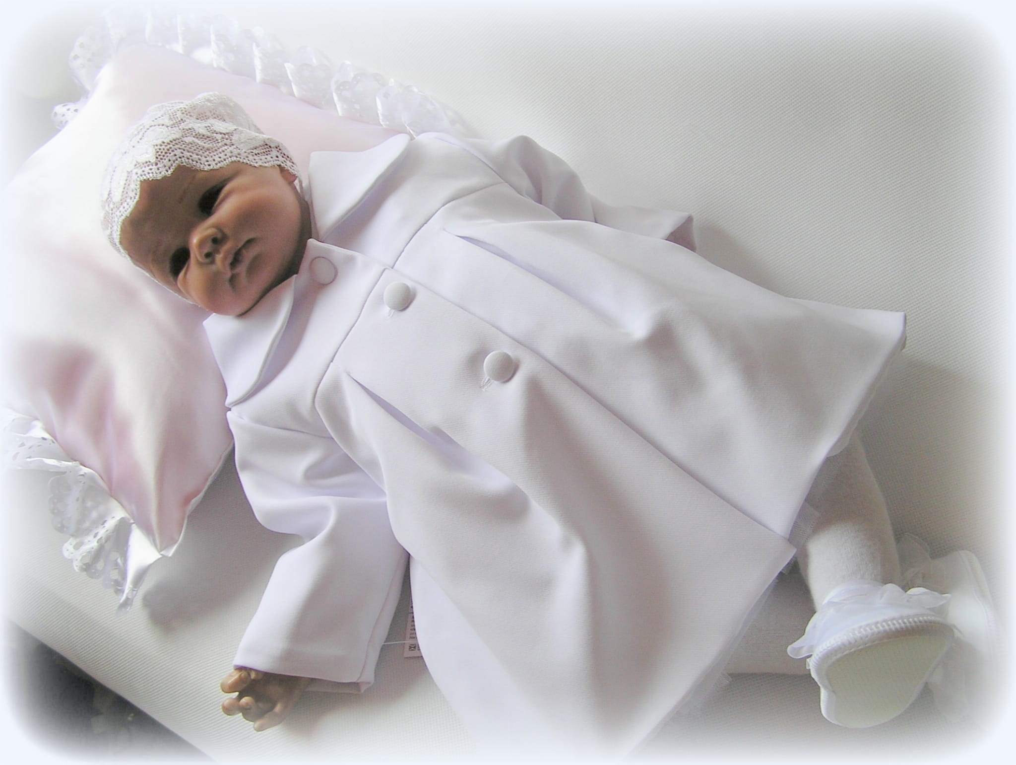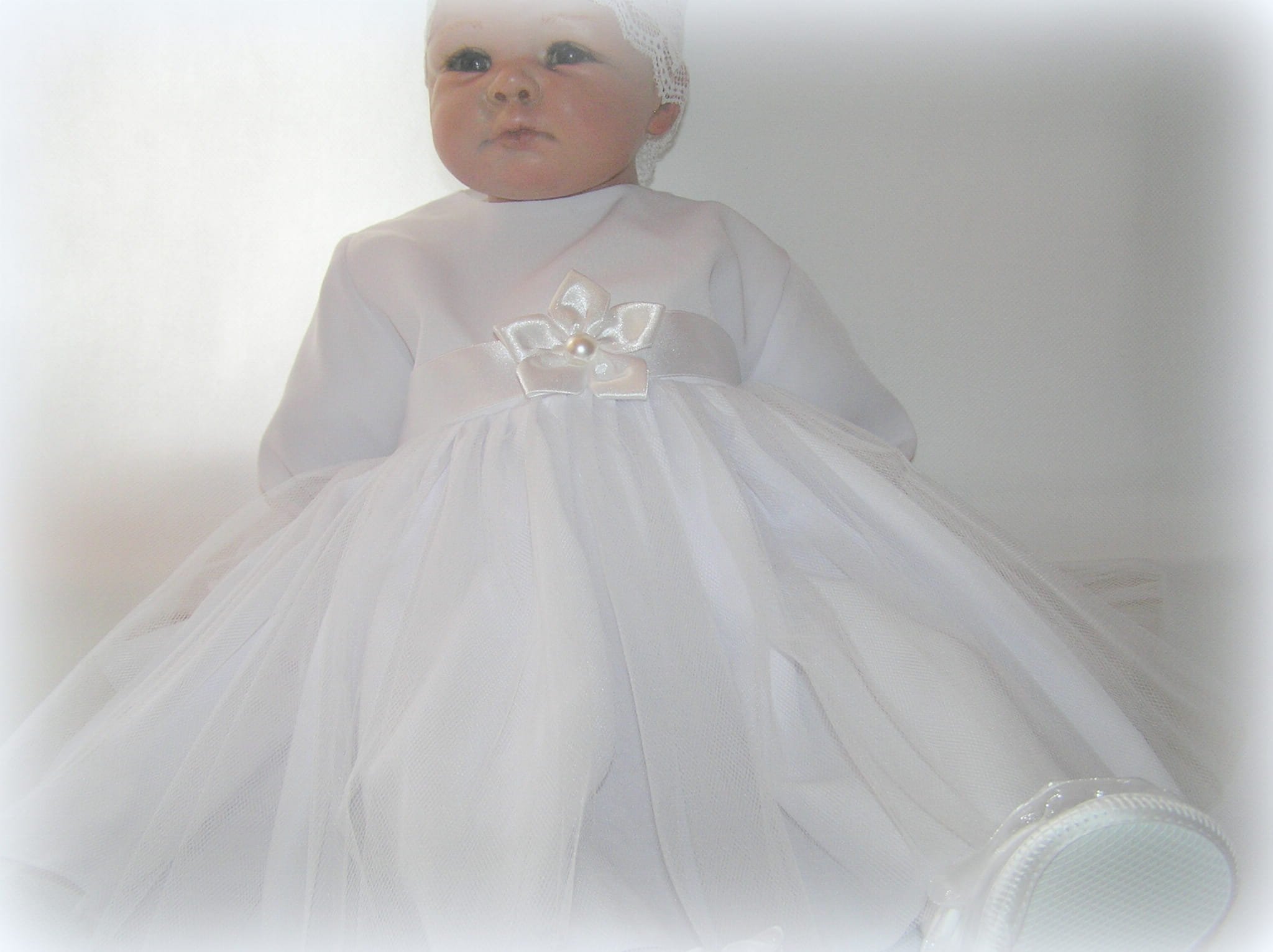 Przeuroczy i bardzo subtelny, a zarazem szalenie elegancki komplet na chrzest dla dziewczynki. Uszyty z bardzo delikatnej miękkiej i jedwabistej tkaniny w kolorze śnieżnej bieli. Płaszczyk zapinany na guziczki, na podszewce albo na polarze lub pikówce - opcje do wyboru. Sukienka z tej samej tkaniny co płaszczyk na podszewce , dół sukienki stanowi tkanina z gładkim i miękkim tiulem. Całość zdobi jedynie satynowy kwiat na sukience co sprawia, że komplecik ten jest świetnym wyborem dla ceniących skromność i elegancką równowagę. Ubranko uszyte w POLSCE przez polskiego producenta z materiałów w doskonałym gatunku.