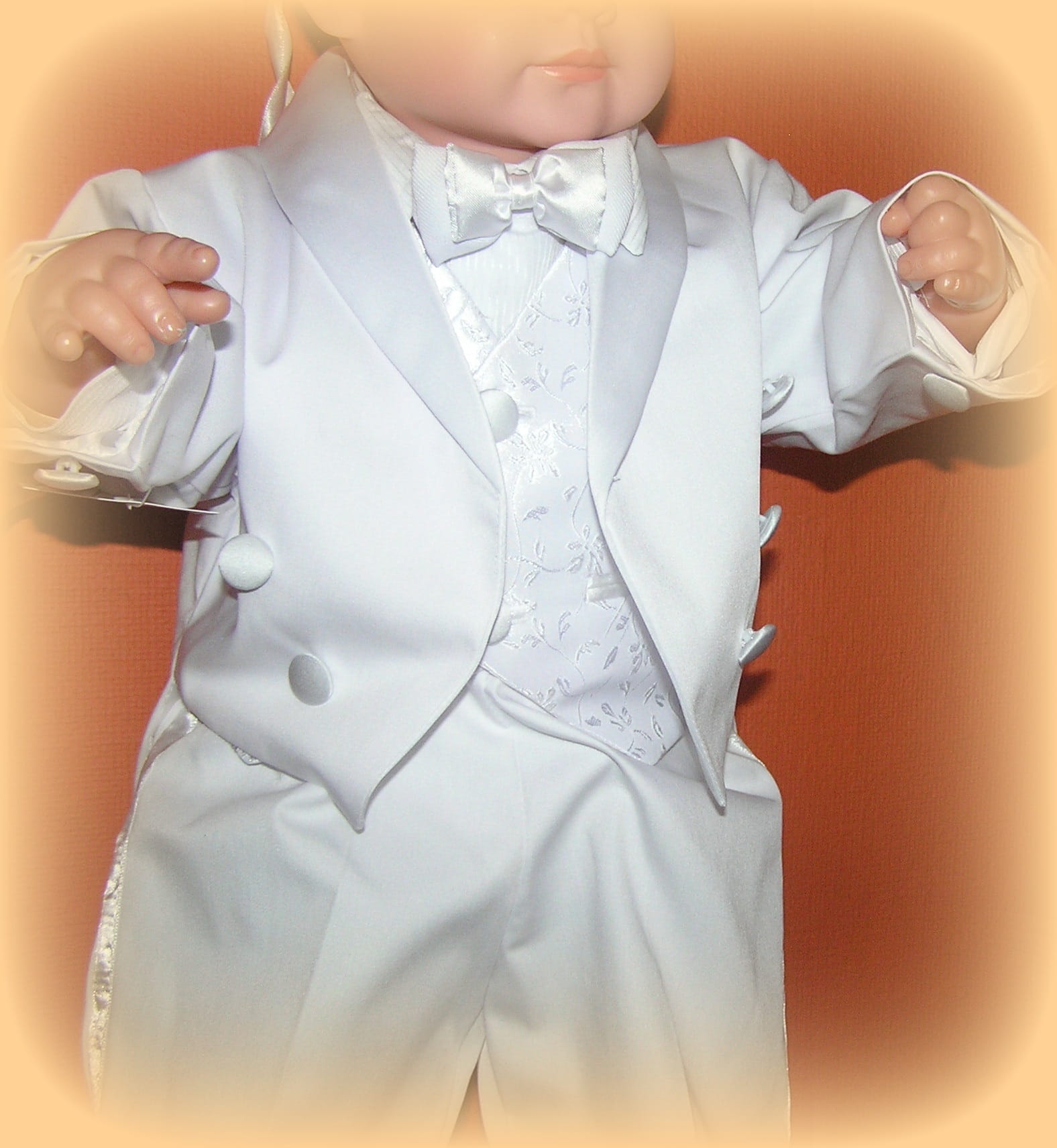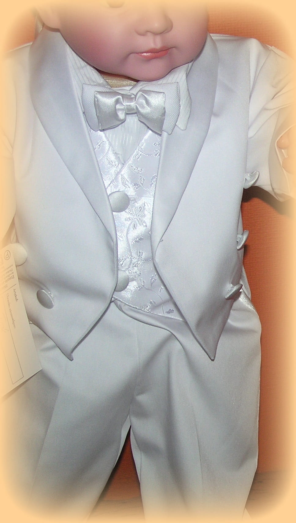 Piękne, bardzo eleganckie i gustowne ubranko dla małego mężczyzny. Doskonałe, by uświetnić najważniejszą uroczystość w życiu małego człowieka. Delikatne i wygodne dla maluszka.
