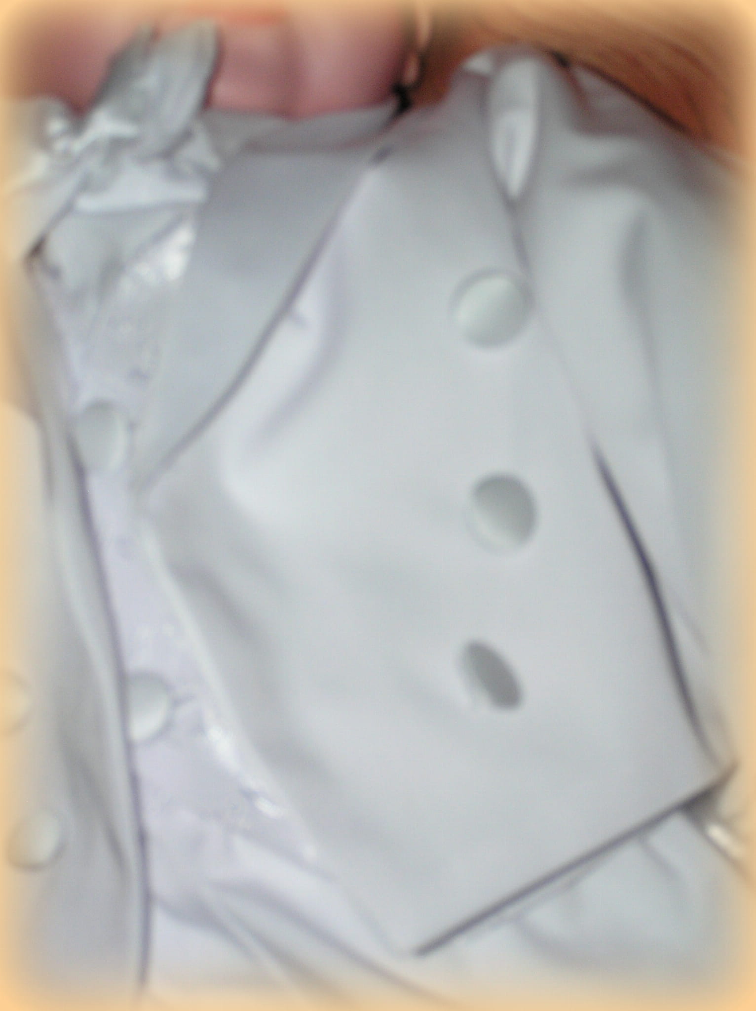 - Kaszkiet z białego materiału , z tyłu na gumce.