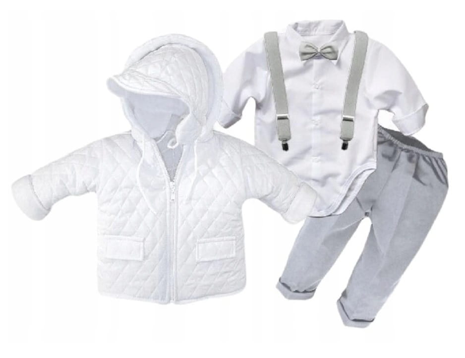 Ubranko na chrzest dla chłopca z kurteczką