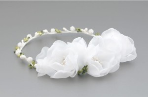 Uroczy WIANEK DO I KOMUNII ŚWIĘTEJ. Wianuszek wykonany z delikatnych białych elementów ozdobionych perełkami. Kompozycję uzupełniają drobniutkie pręciki imitujące maleńkie owocniki w kolorze jaśniutko-zielonym. Ztyłu ianek zdopią przepięke kwiaty z białego woalu, Idealny dodatek do każdego stroju komunijnego dla dziewczynki. Doskonale pasuje zarówno do alby komunijnej, jak i do bardziej strojnej sukienki na komunię. Wianuszek wykonany całkowicie ręcznie przez utalentowane i profesjonalne dekoratorki-florystki. Będzie idealnym wykończeniem każdej stylizacji komunijnej.