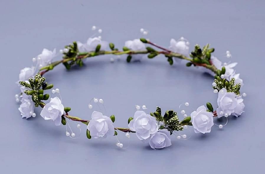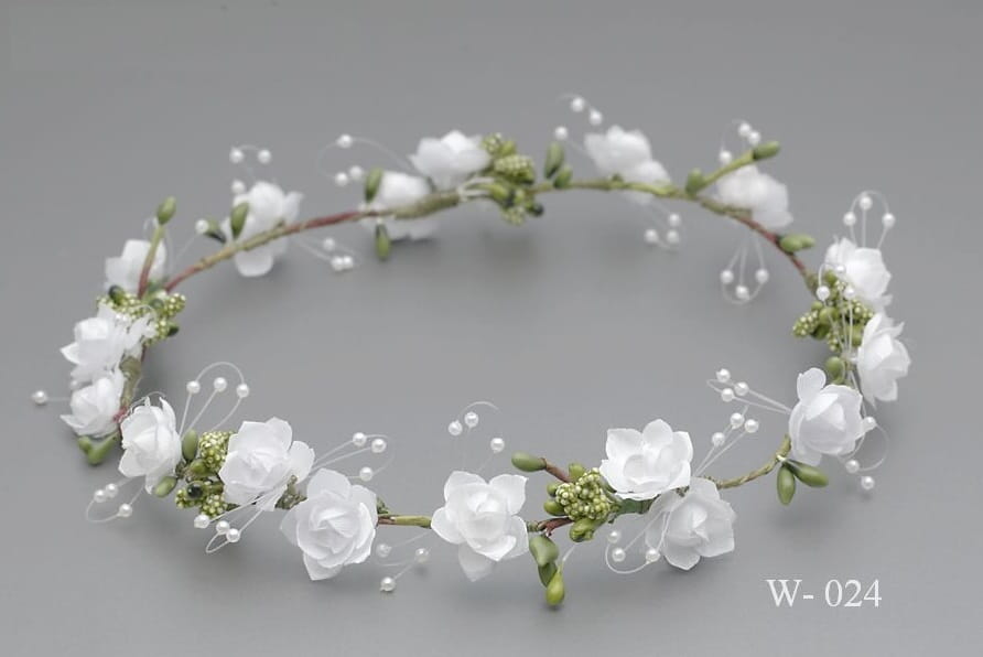 Przepiękny wręcz idealny WIANEK KOMUNIJNY. Śnieżnobiały, wykonany z delikatnych kwiatuszków ze sztywnej satynowanej tkaniny. Niewątpliwego uroku dodają wianuszkom wykończenia z maleńkich perełek . Ponieważ wszystkie wianki układane są na plastycznym, dosyć giętkim grubym drucie, każdy z nich posiada zmniejszenia obwodu i dopasowania do wielkości głowy dziecka. Idealne uzupełnienie komunijnych strojów na Pierwszą Komunię Świętą dla dziewczynek.